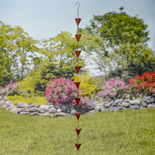 Crafted from durable iron with a powder-coated antique rust finish, this rain chain is built for year-round outdoor use. The umbrella-style cups collect rainwater and channel it downward, helping manage runoff while creating a soft, soothing water sound. Its elegant silhouette adds warmth and visual interest to porches, patios, entryways, and garden beds.